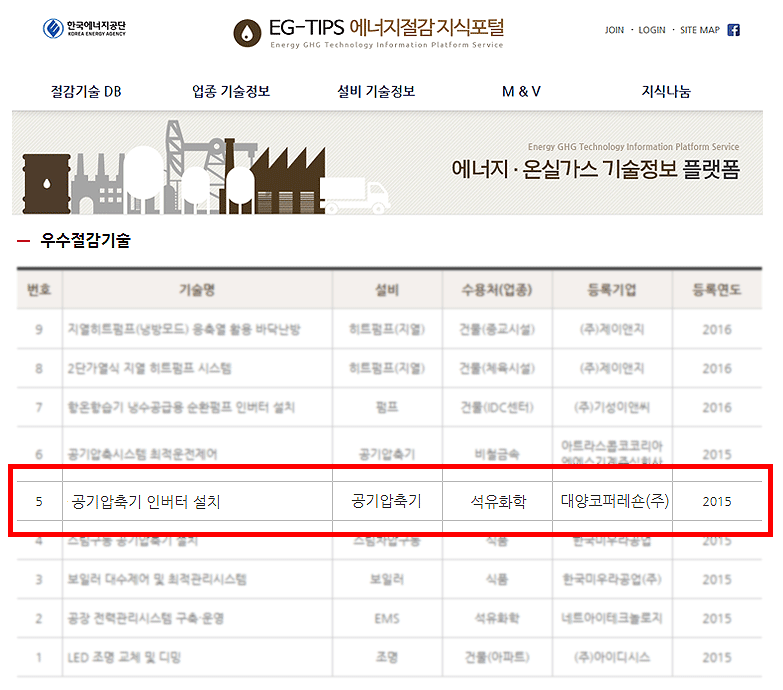 한국에너지공단 우수절감기술 선정